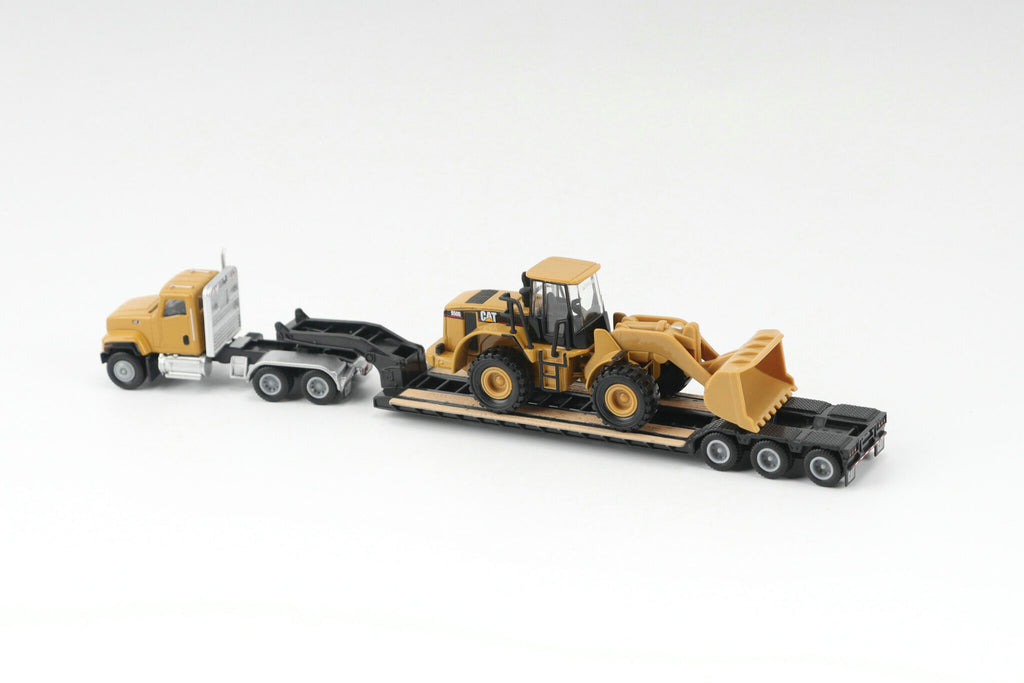 CAT CT681 Day Cab Tractor with Lowboy Trailer CAT 950G Wheel Loader(HO Scale)