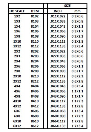 8102 - .011" X .022" OPAQUE WHITE POLYSTYRENE HO SCALE STRIPS (1X2)