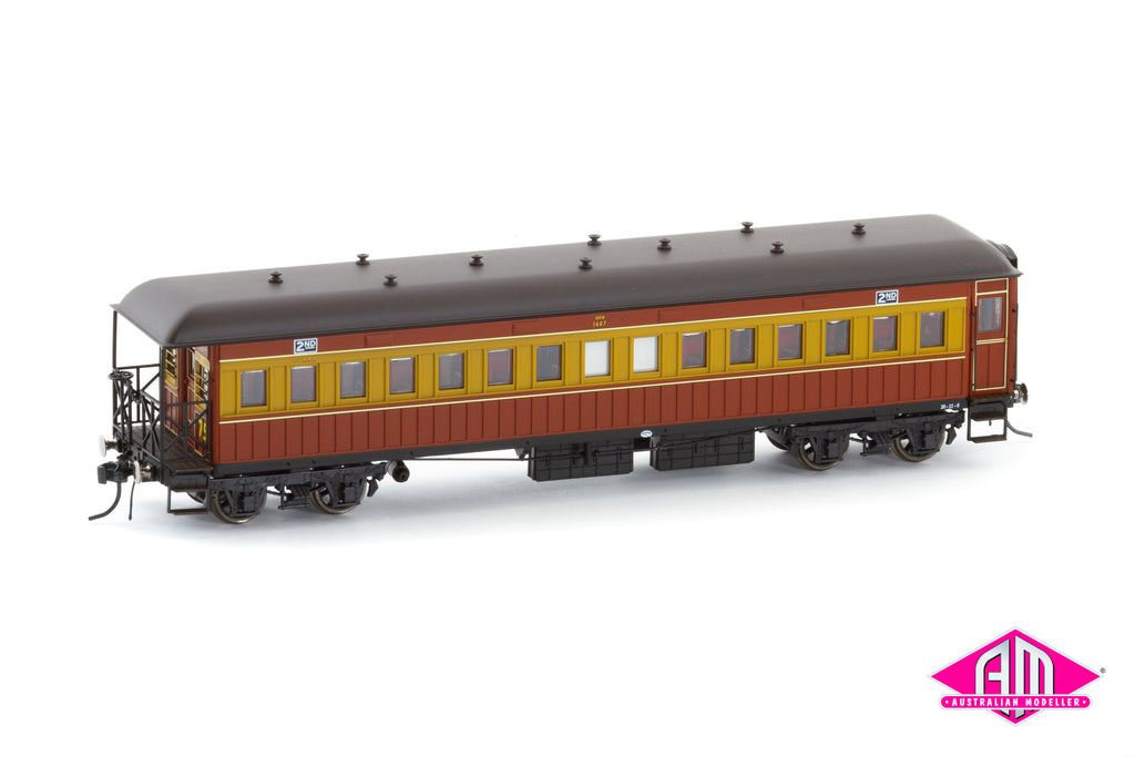 NSWGR Vestibuled End Platform Cars Set 75 Red & Russet 1940/50s FO050 (5 Car Set) HO Scale