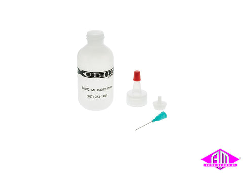 Dispensing bottle with needle adaptor and a 0.010" I.D. stainless steel capillary tube.